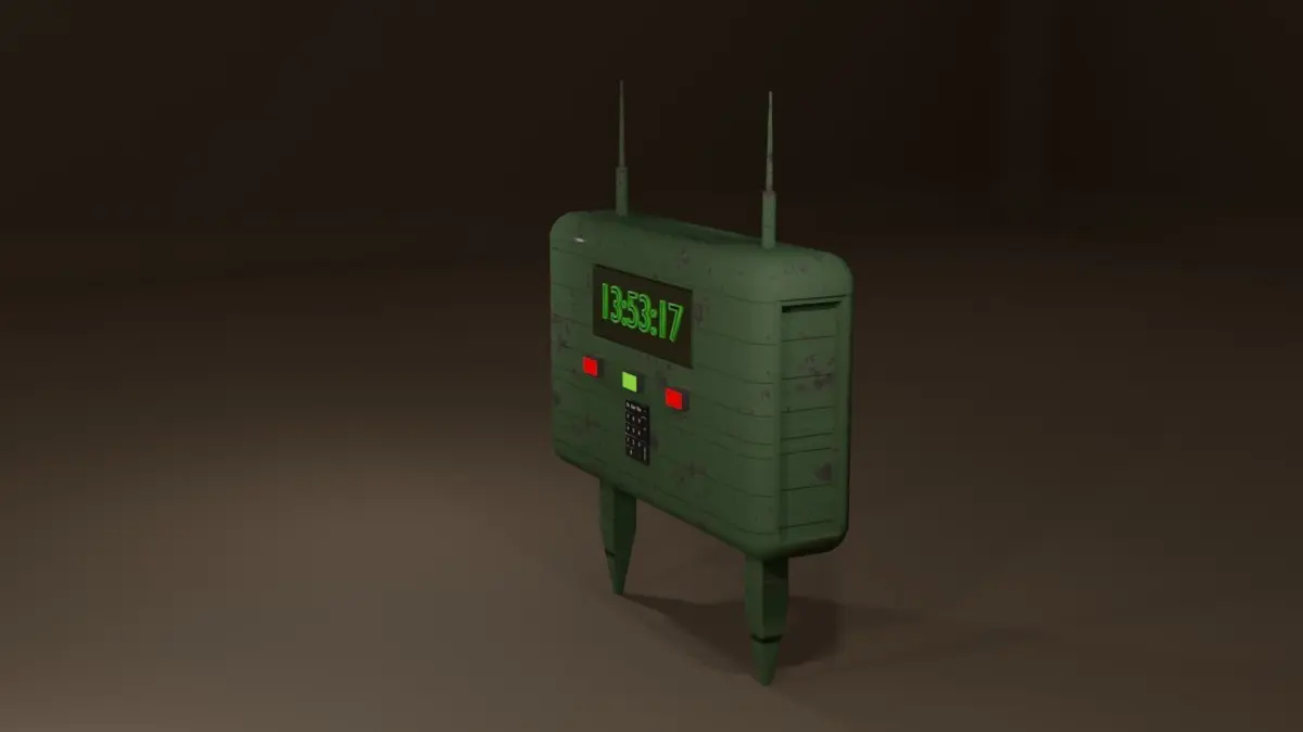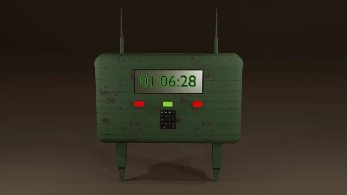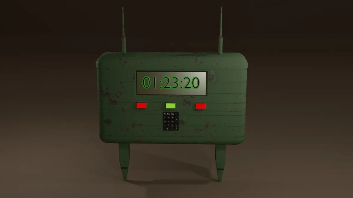 Timer works. Gave it a rustic old camo feel. Timer is setup with geometry nodes.