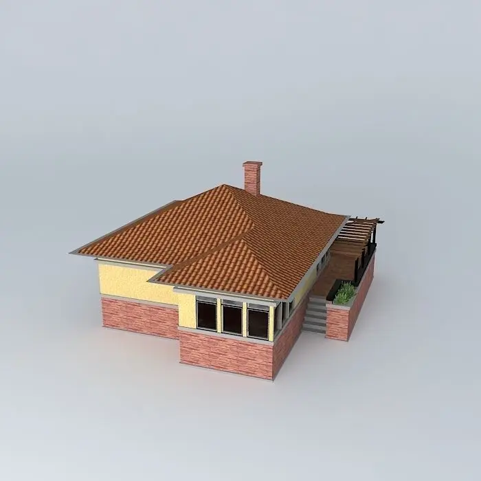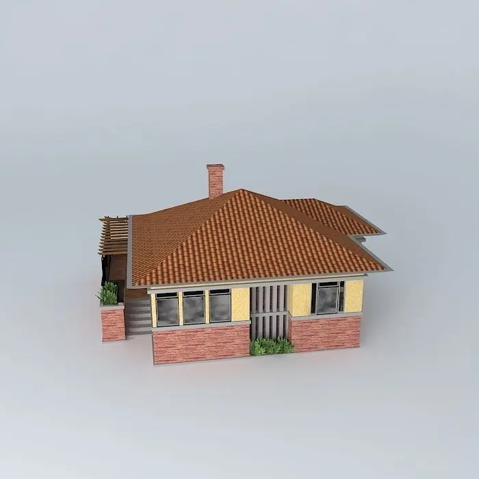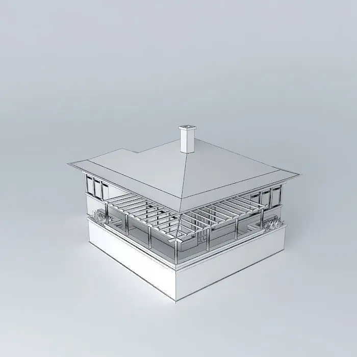 This 3D model was originally created with Sketchup 8 and then converted to all other 3D formats. Native format is .skp 3dsmax scene is 3ds Max 2016 version, rendered with Vray 3.00 Here is a couple's single bedroom, single bathroom Frank Lloyd Wright inspired vacation home. See its great design of the combined living and dining that is heated by a great contemporary fireplace. Makes for a quaint little house. There are ample cabinets in the kitchen. The kitchen and laundry are the same room. Across from the dryer is an ironing board cabinet. Looking for the furnace? Look in the trap door in the floor. It exists in the crawl space under the house. The trap door is locked in this model. However, I can't take full credit for this hut. It is actually Cory's house. He did a great job and there was already an interior. I filled in many of the details. I added the coat closet, the laundry station, cleaned up lines, and repainted the fascade. oh, yeah, I added the pergola for good looks. But, thank you so much, Cory. Please rate my alterations.