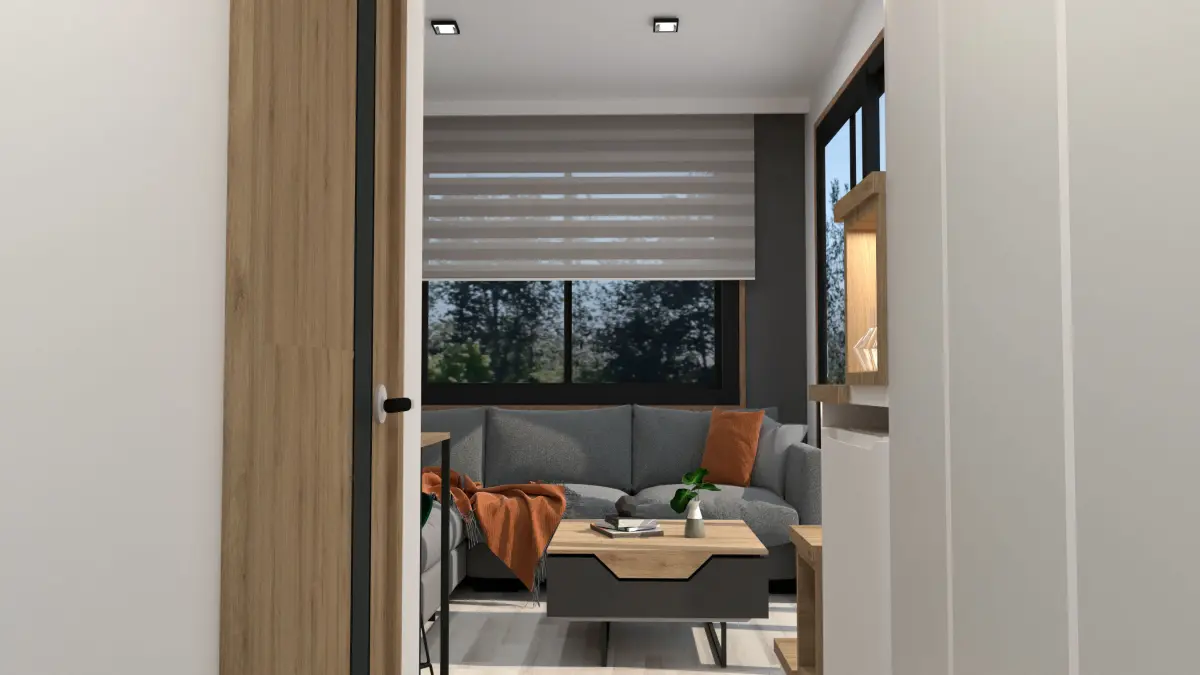Real Project!!It is a tiny house design that 7m long and 2.5m width and 3.95m height. The design has 2 bedrooms, 1 living room, kitchen, bath and toilet. It has also a veranda. I upload photos of design from inside and outside. Also there is a DWG file that you can see dimensions of rooms and other details.
