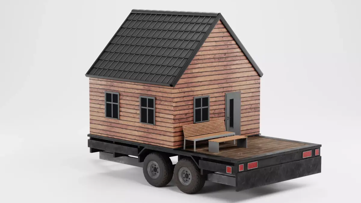 A compact, design-neutral tiny house on wheels, blending realistic wooden materials with a clean form. Optimized as an exterior-only asset for streamlined visualization workflows. Built with accurate proportions and natural texturing to ensure realistic integration into any scene.