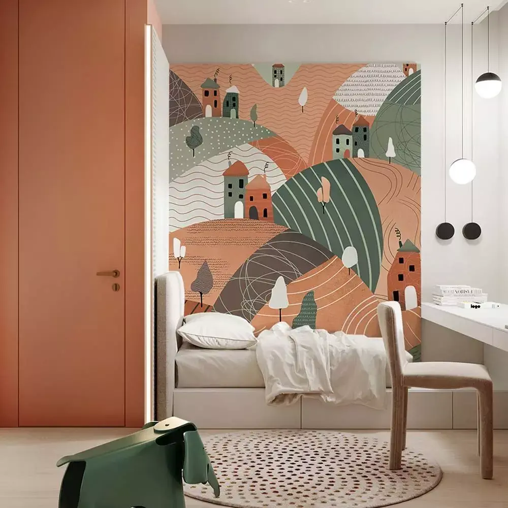 Transform children’s rooms and cozy interiors with a calm storybook focal wall using this Whimsical Hills & Tiny Houses Wallpaper Texture Pack. Layered rolling hills, playful trees, and charming house silhouettes create a friendly landscape that pairs beautifully with natural wood, terracotta accents, and soft textiles for warm, modern spaces. The pack includes three coordinated colorways—Terracotta & Green, Pastel Meadow, and Cocoa Sunset—so scenes can switch palettes without altering composition or mood. Each variant ships as seamless 4K textures with a complete metal/rough PBR set: BaseColor (sRGB), Normal (OpenGL), Roughness, Ambient Occlusion, and Height/Displacement. Maps are aligned, consistently named, and optimized for large wall tiling, ready for Blender, 3ds Max, Maya, Cinema 4D, Unreal Engine, and Unity. Start at 1 m per UV unit and adjust to framing for the ideal balance between pattern density and readable village details. The subtle paper grain and crisp edges hold up in close‑ups while remaining soothing at distance—ideal for photoreal archviz, VR/AR walkthroughs, and real‑time configurators. Original artwork created specifically for visualization; no third‑party stock elements. Include multiple preview angles and a material‑ball per colorway to increase listing visibility and clien