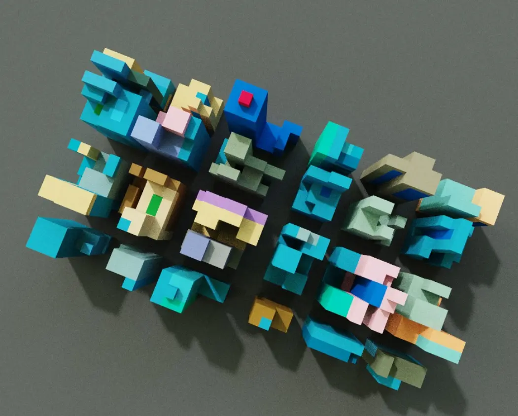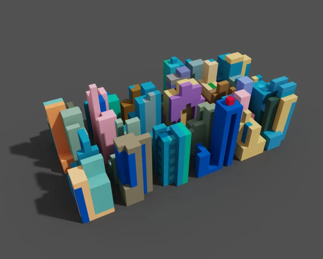 Tiny modern city in voxels made usin MagicaVoxel.