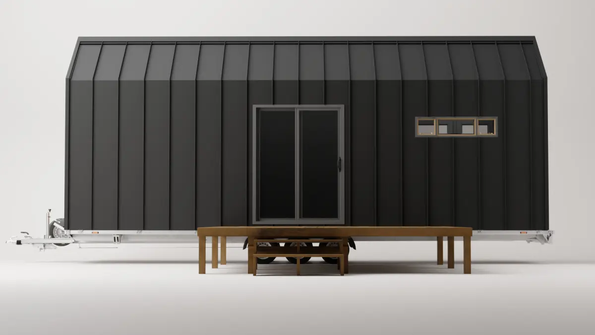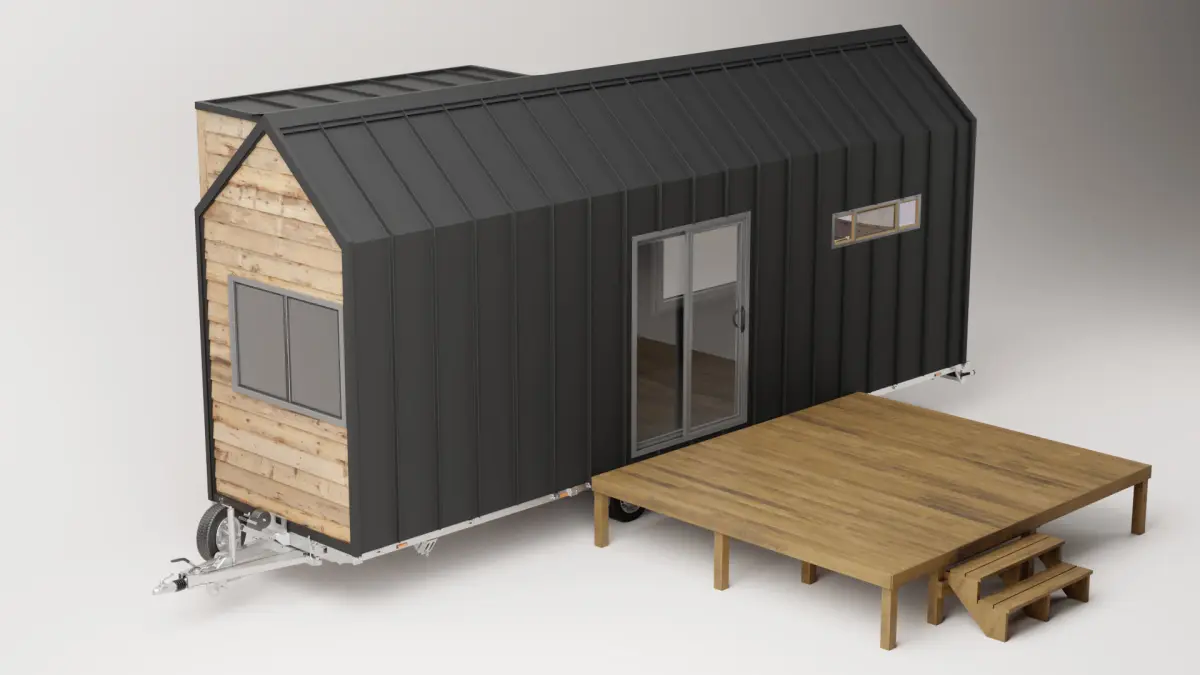 Presenting a finely detailed 3D model of a charming tiny house on a trailer, ideal for various projects. This model boasts intricate exterior siding and roofing details.