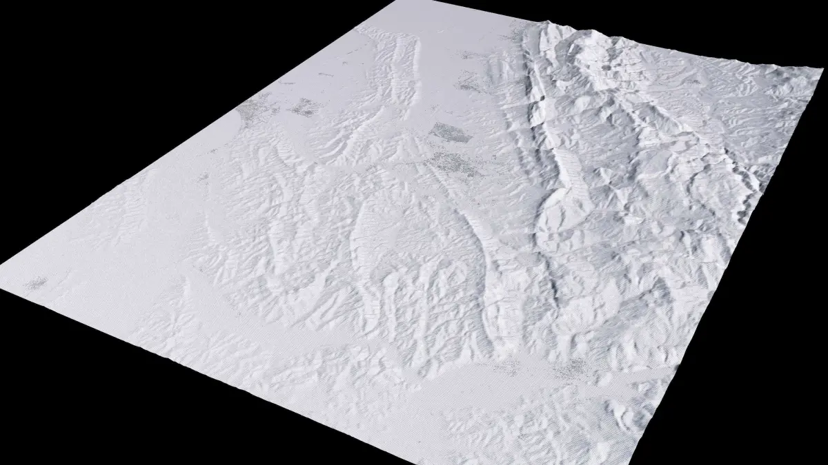 Originally created in Houdini 19. Final images rendered in Houdini. Data source is ASTER GDEM V3, ASTER WATER V1, Open Streep Maps 2022, Copernicus Sentinel 2016.