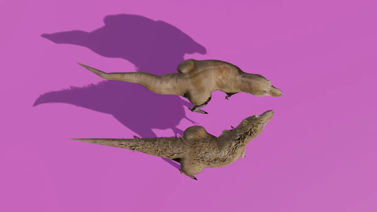 This product is actually 2 models in 1. They are scientifically reconstructed and rigged Tyrannosaurus rex, one of the models has feathers and the other does not.All textures are 2200 pixels by 2200 pixels.In these models we have textures for roughness, displacement, normal map, albedo and subsurface scattering.