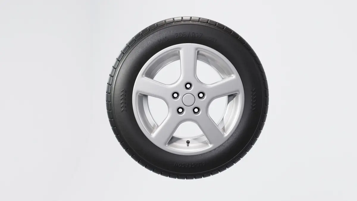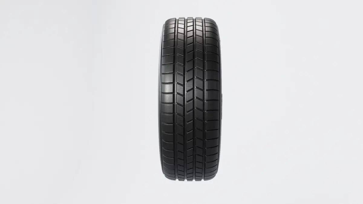 Textures:No. Simple noise texture was generated inside of Blender for tire. Wheel uses standard material.