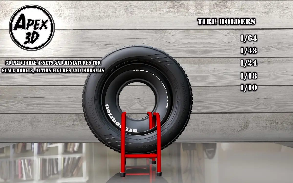 Looking to add some realism to your dioramas, scale models, or action figure displays? Look no further than this 3D printable Tire Holders with Tires! This high-quality replica is available in the scales 1/641/431/241/181/10 making it the perfect addition to any collection.