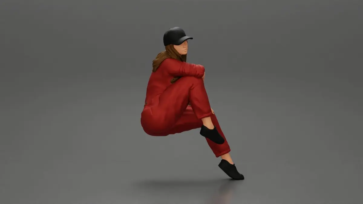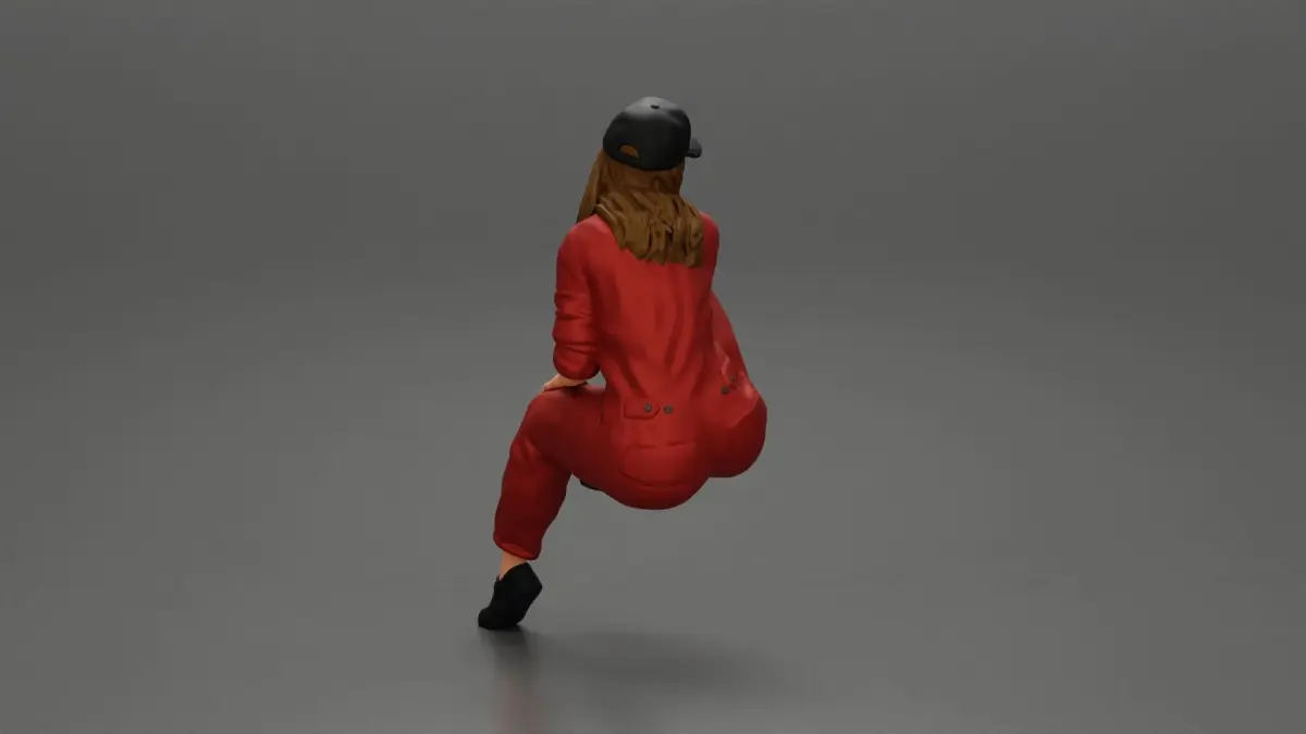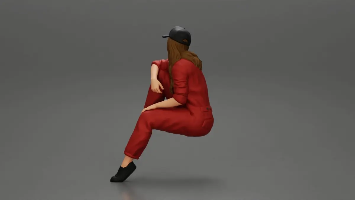 Home Catalog Tired woman mechanic in suit and cap sitting 3D print model