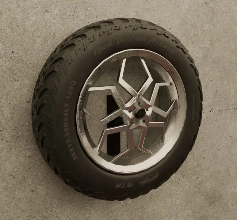This high-quality 3D model of car tires is designed with precision and realism in mind, perfect for use in automotive visualizations, games, product showcases, and simulations. The model features detailed tread patterns, accurate sidewall textures, and realistic rubber material with subtle wear for added authenticity.