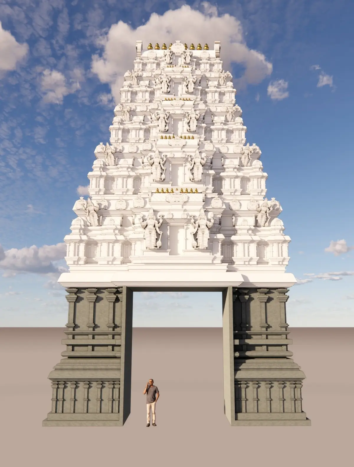 Indian TempleDivine 3D Elegance - Step into the realm of spiritual artistry with our meticulously crafted 3D model of the iconic Tirupati Balaji Temple Entry Gate and Dome. Immerse yourself in the divine details of this stunning creation, meticulously designed using SketchUp 2022.