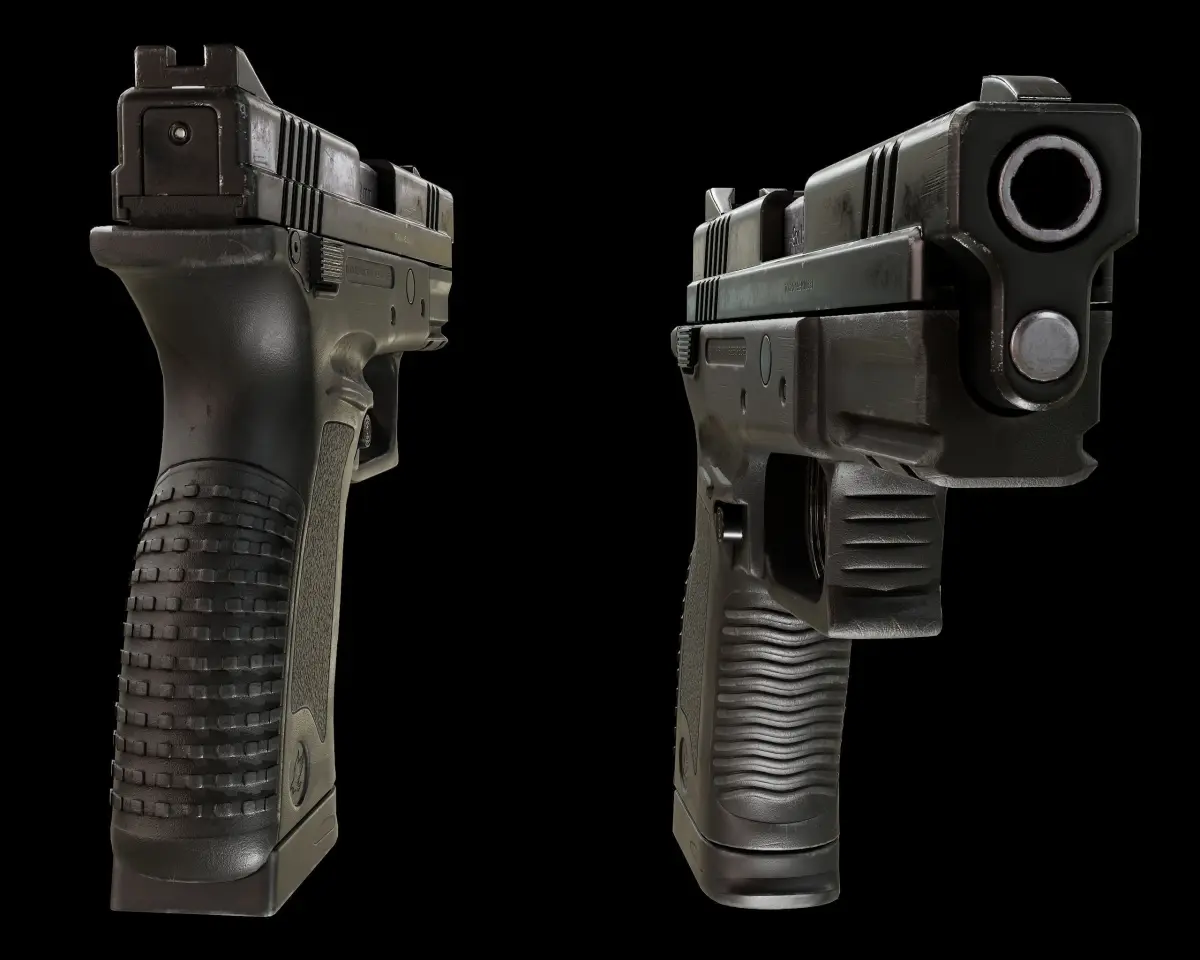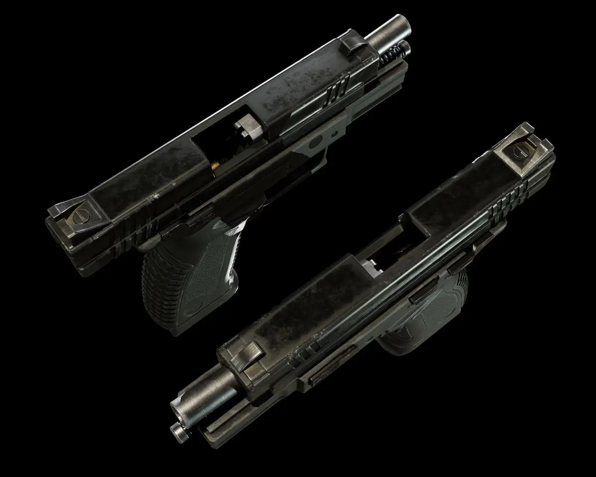 The textures were separated:Frame - Texture setMagazine and bookmark - texture setSlider, Barrel and Recoil Spring - Texture Set