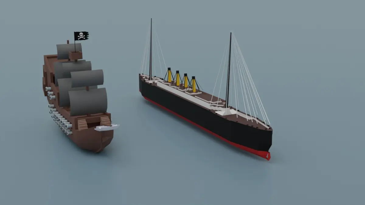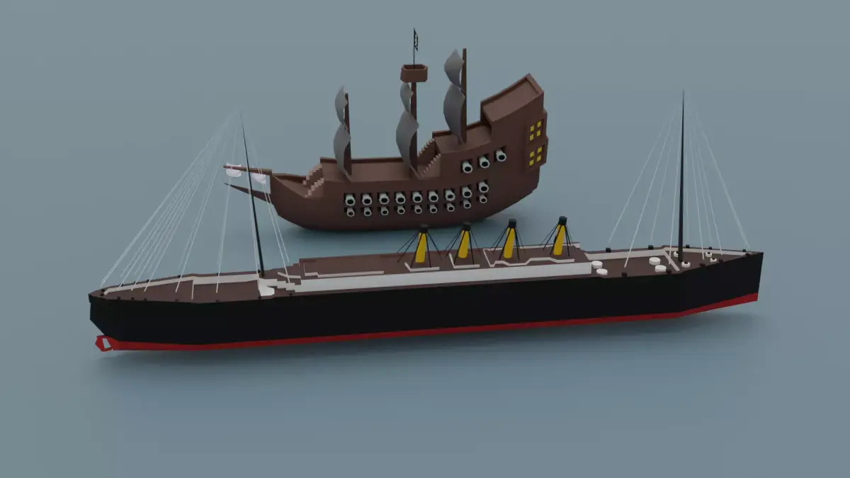 Hello friendsI built two shipsThe first Titanic shipThe second ship of the Pirate ShipReady for games and cartoonsWhich was made with the least volumeall vertices Titanic ship:1703all vertices Pirate Ship :4572