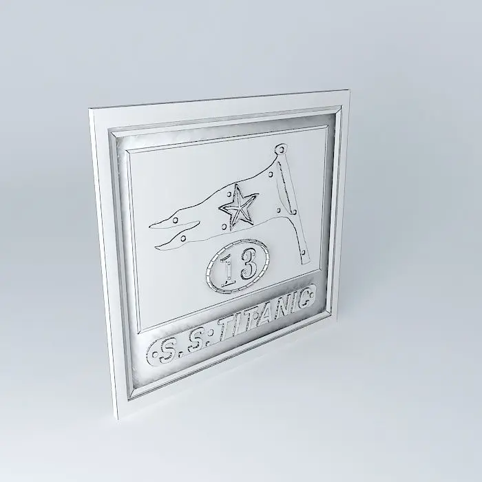 This 3D model was originally created with Sketchup 8 and then converted to all other 3D formats. Native format is .skp 3dsmax scene is 3ds Max 2016 version, rendered with Vray 3.00 Incredibly scarce flag removed from a Titanic lifeboat. No. 13... Painted cast bronze flag and mast measures approximately 9.25 x 8. Red and black swallowtail flag and mast features a five-point white star cast in relief in the middle... Plus I have combined the Name Plaque %26 No. 13"... The Last in those that Survived... Presented here as a Wall Picture Plaque... Size of Model... Less than 2 mbs...