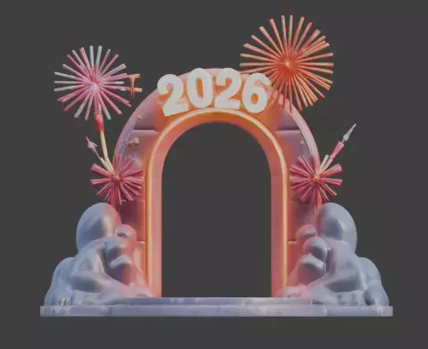 Tags new year, 2026, portal, gate, arch, celebration, festive, holiday, pink, fantasy, fireworks, sparkles, clouds, cartoon, stylized, prop, 3d model