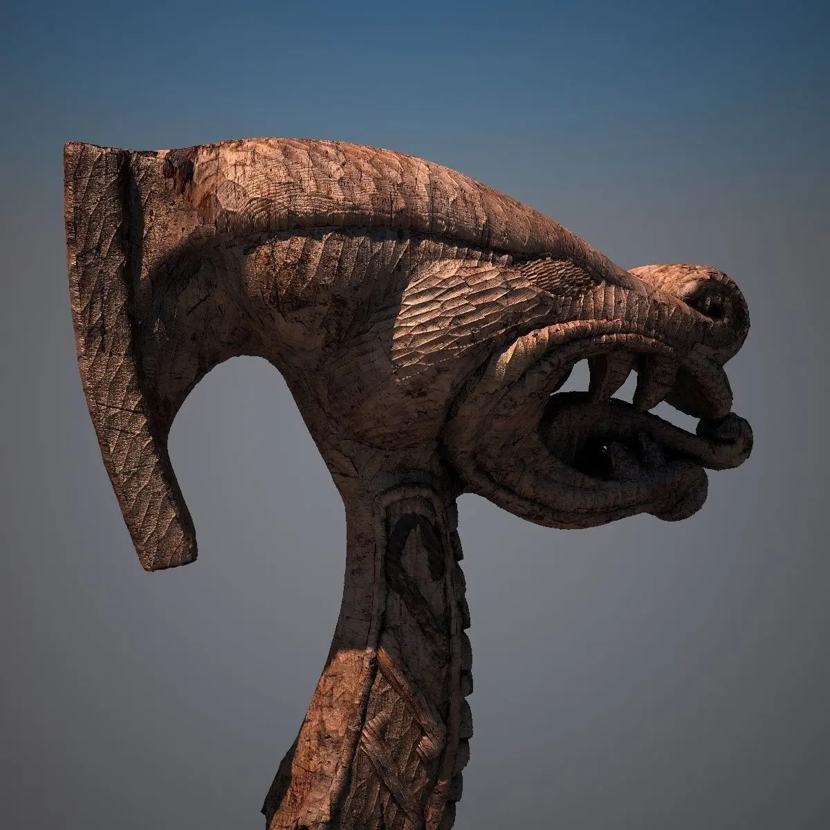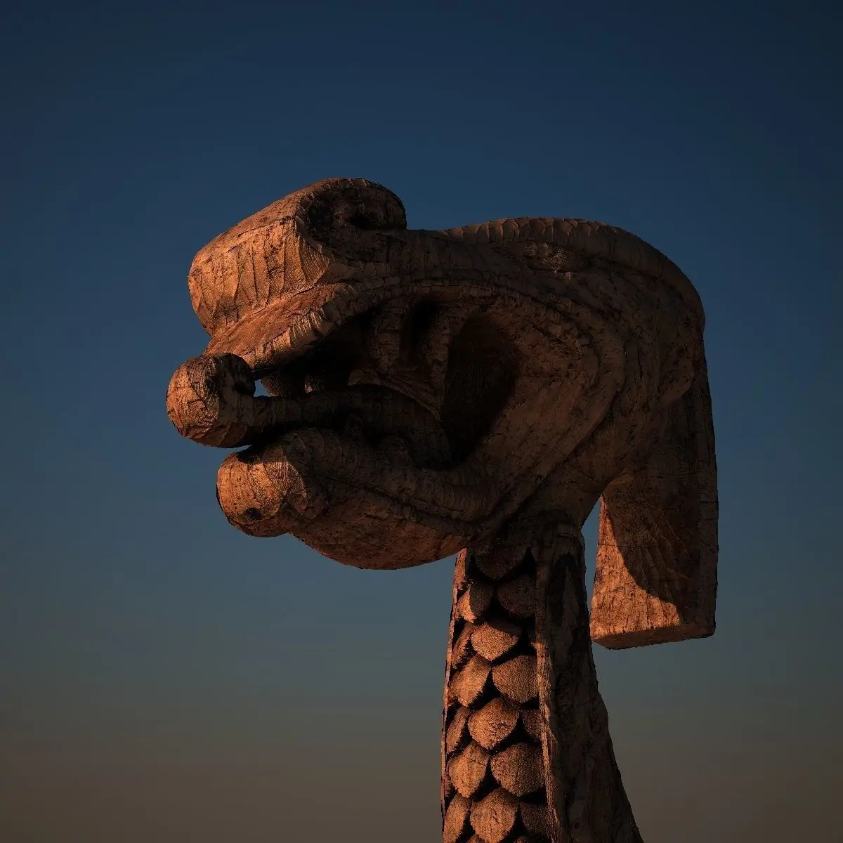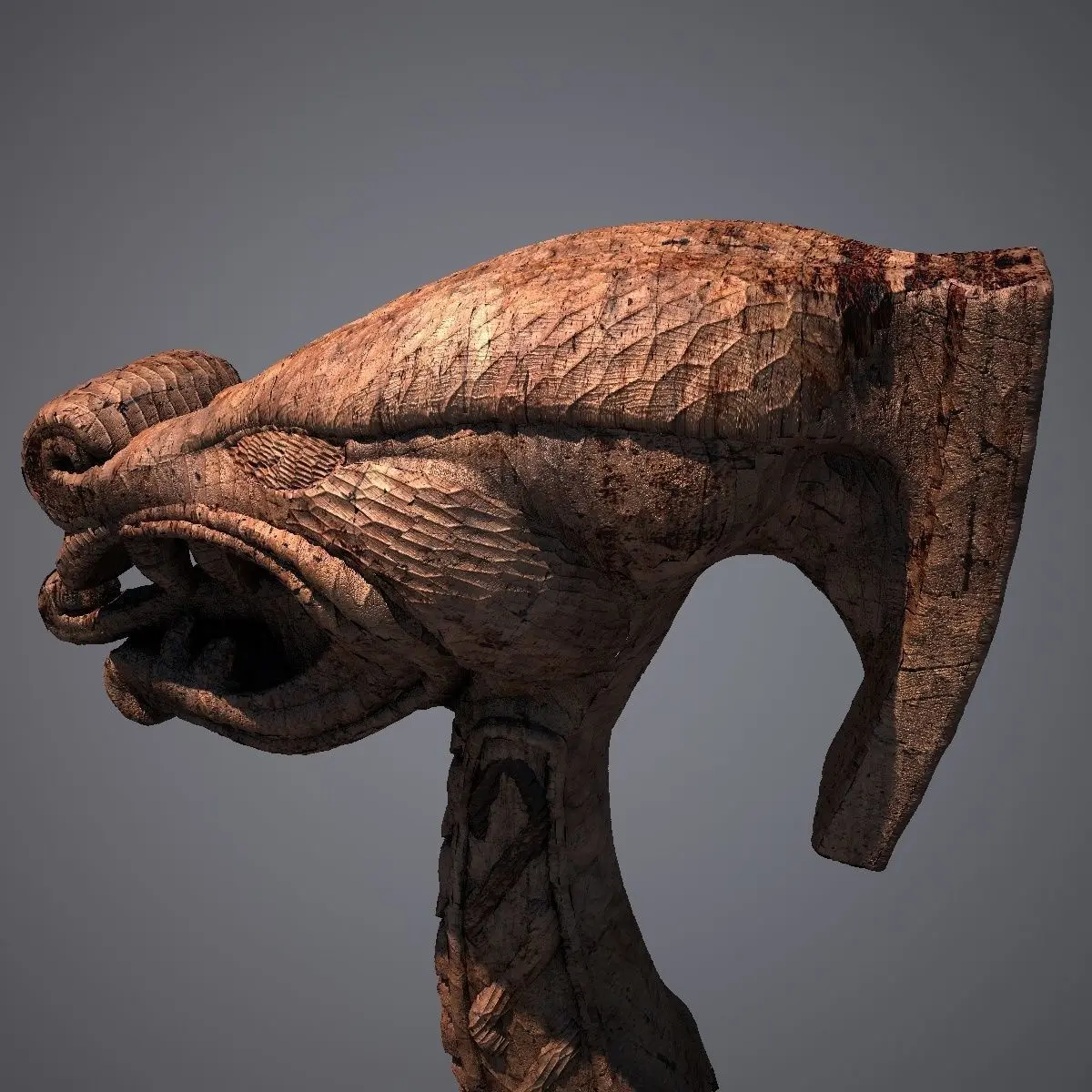 This is a model of a (carved) dragons head, which I´ve modeled to be used with a viking longboat.