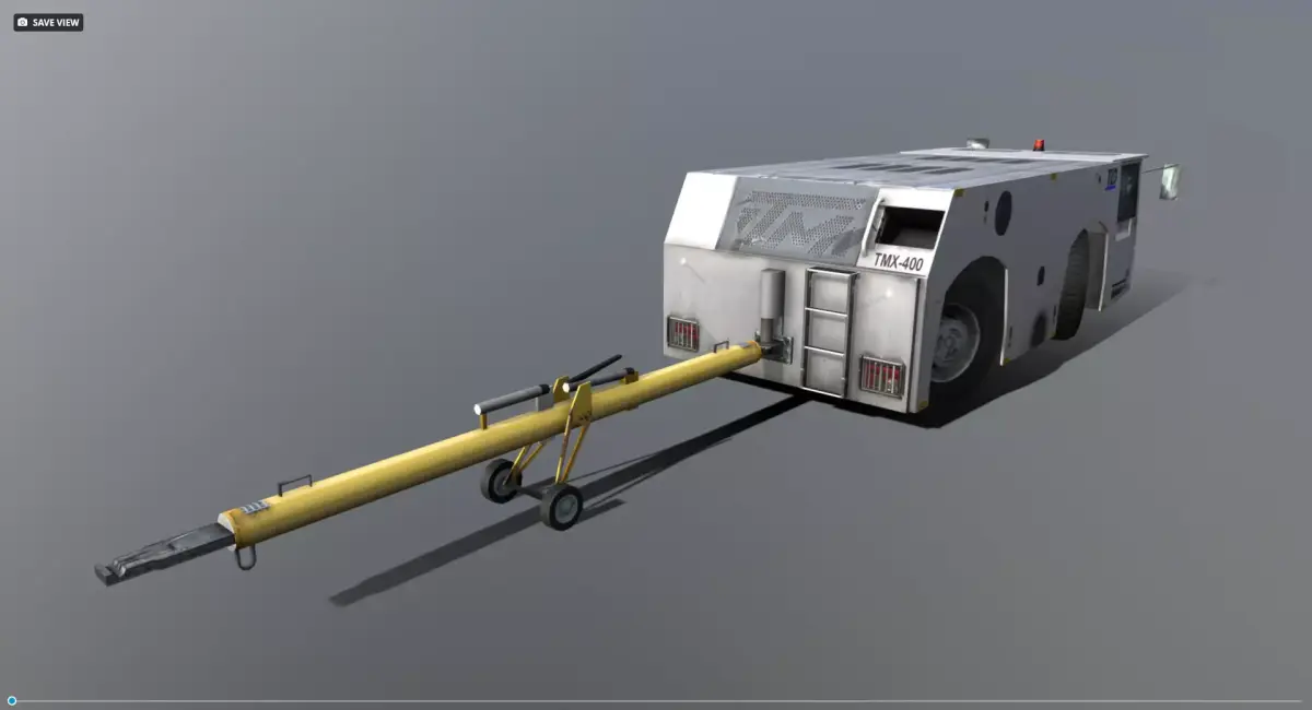 The TMX 400 aircraft towing tractor with 4 wheels steer and 4 wheels drive, has a driveline capability of 24 500 daN (55 000 lbs). It has the ability to perform push and pull operations on aircraft up to B0EING 7`47
