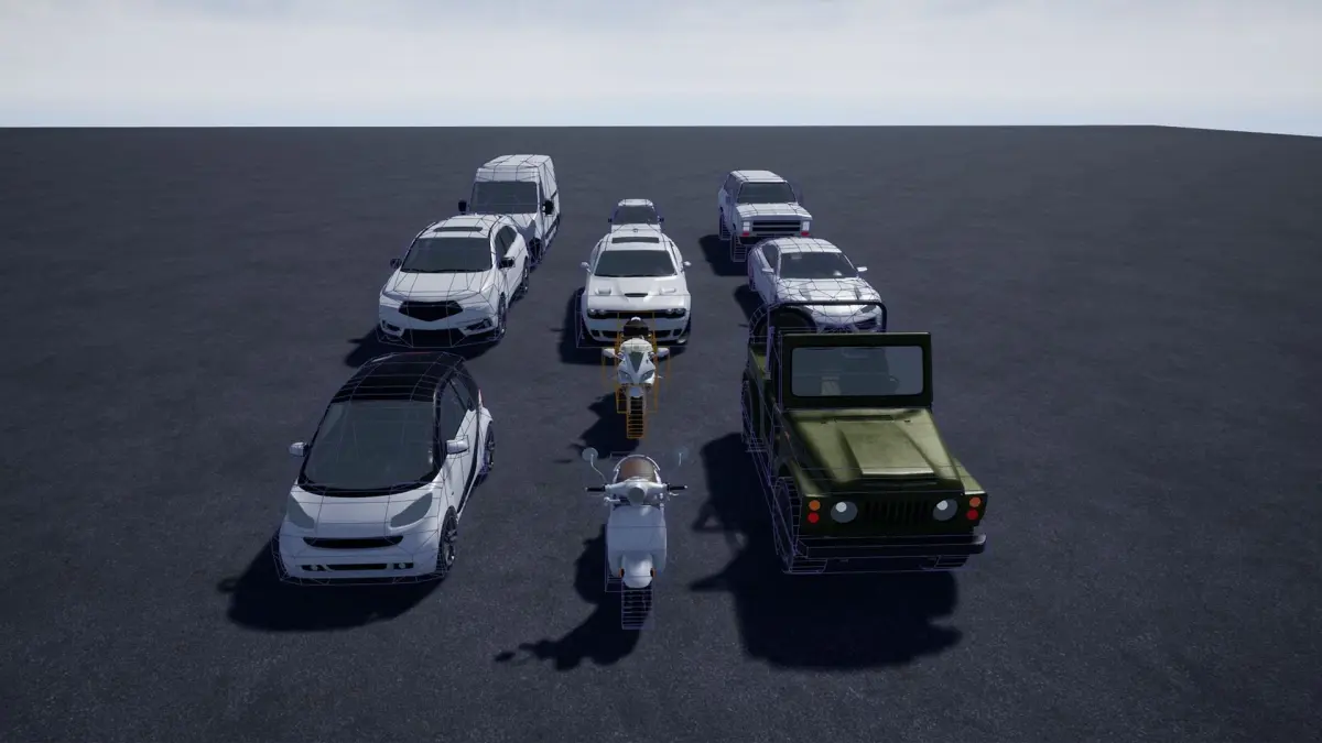List of Models:Classic MoPedClassic MoPed RustedHybrid VanHybrid Van DestroyedHybrid Van No InteriorMuscle CarMuscle Car destroyedMuscle Car No InteriorOld Pickup TruckOld Pickup Truck DestroyedOld Pickup Truck No InteriorSmall Military TruckSmall Military Truck DestroyedSmall Military Truck Hood DownSport BikeSport Bike DestroyedSports CarSports Car DestroyedSports Car No InteriorSmall CarSmall Car DestroyedSmall Car No InteriorCheap CarCheap Car DestroyedCheap Car No InteriorPanel VanPanel Van DestroyedPanel Van No Interior(Wheels):Small WheelSmall Wheel TireSport Bike WheelSport Bike Wheel TireSport WheelSport Wheel TireStandard WheelStandard Wheel TireStandard Wheel TowerStandard Wheel Display