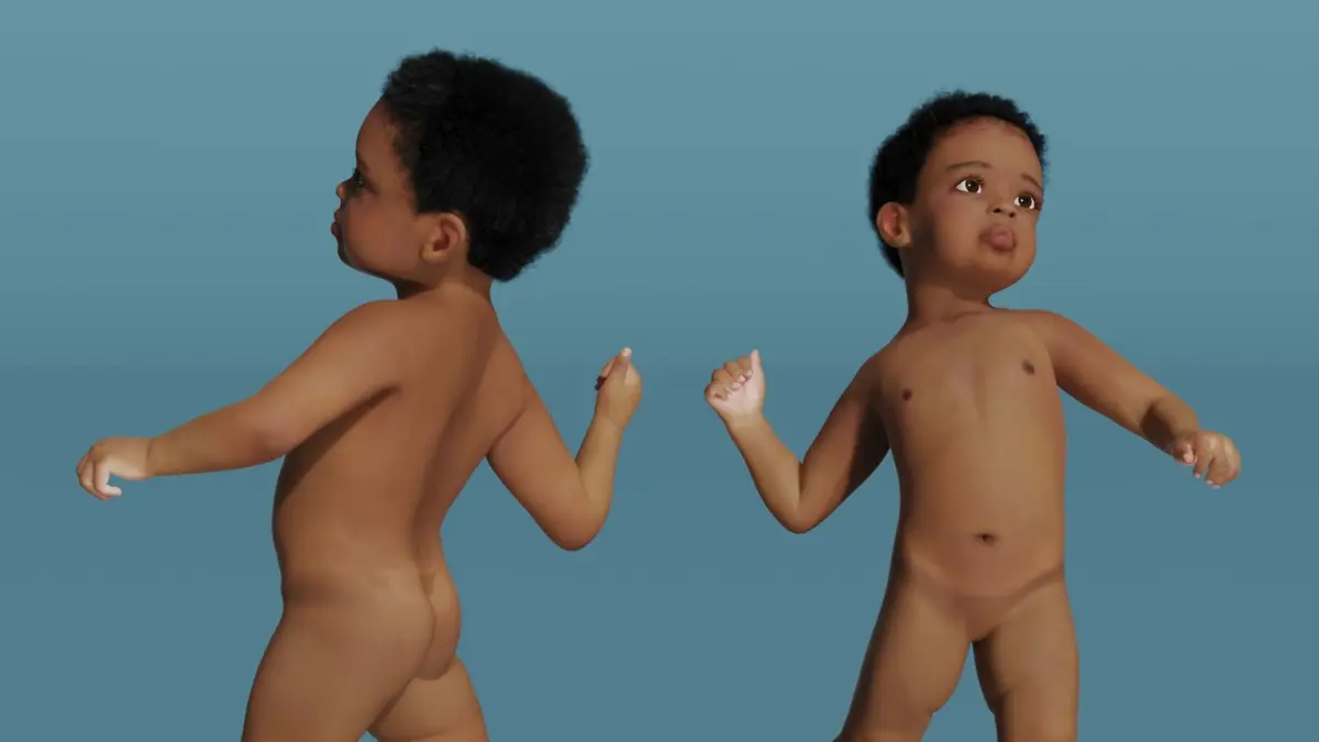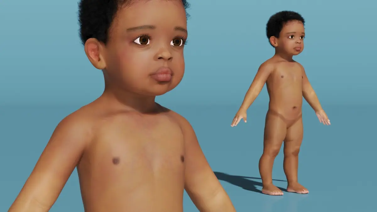 Toddler Black Boy Light Skin Rigged is a three-dimensional model of baby boy who is a human male kid (little one), and who is a human toddler, specifically a male child in the early stages of life.