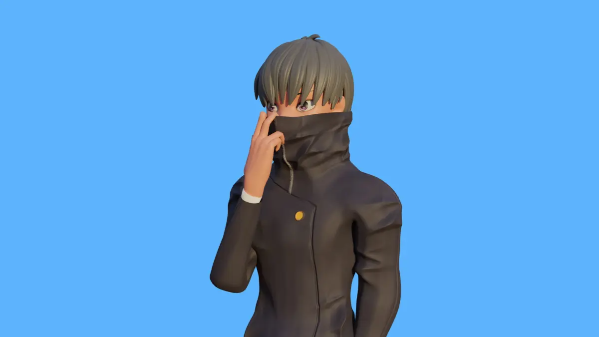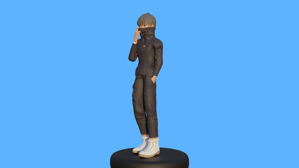 Clothing: Toge's jacket and pants can be created using a combination of modifiers (such as cloth simulation) and manual sculpting to give his outfit a more dynamic appearance, especially in the action pose.