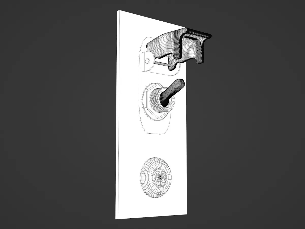 Toggle switch with cover. Switch and cover are separate objects so they can be moved/animated.