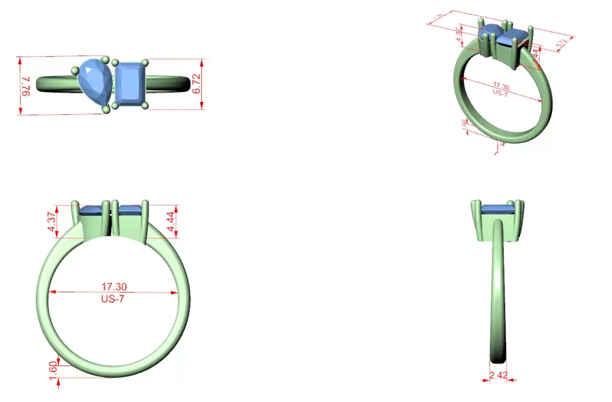 This CAD model is suitable for bespoke custom jewellery as well as scalable commercial production. It allows easy customization of ring size, stone dimensions, stone orientation, and metal type to suit brand-specific or client requirements.