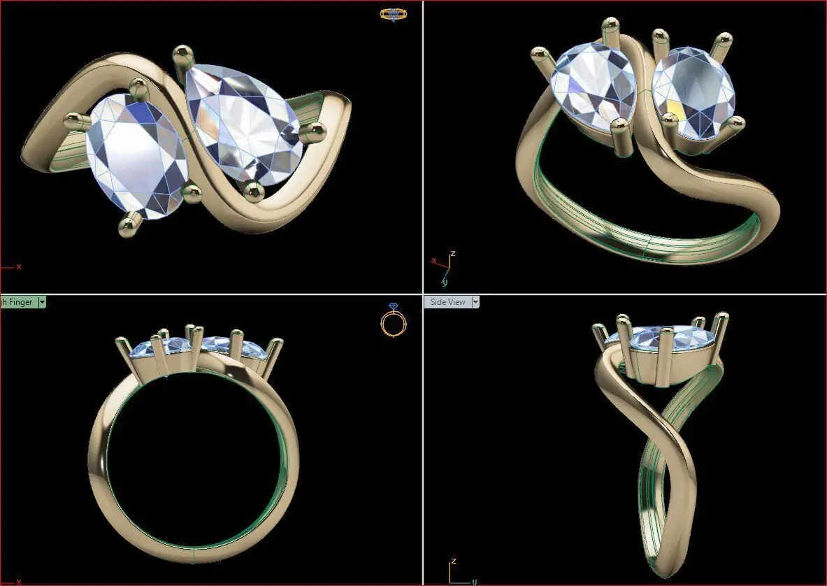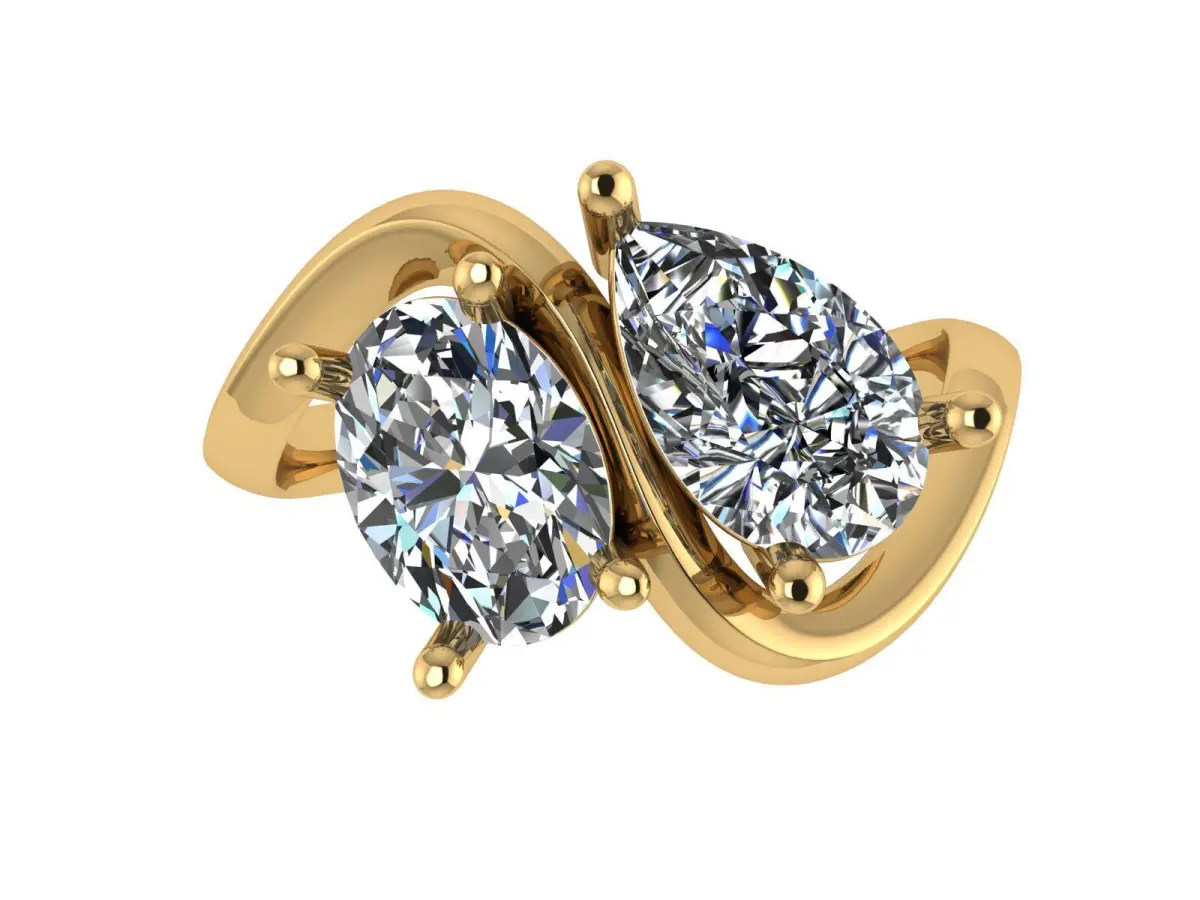 Toi et Moi Ring with Oval and pear shape Cut Diamonds | 18K Yellow Gold Curve Band | Elegant Bridal Jewelry for Her.Canada, USA, Israel, Russia, Switzerland, Spain, France,