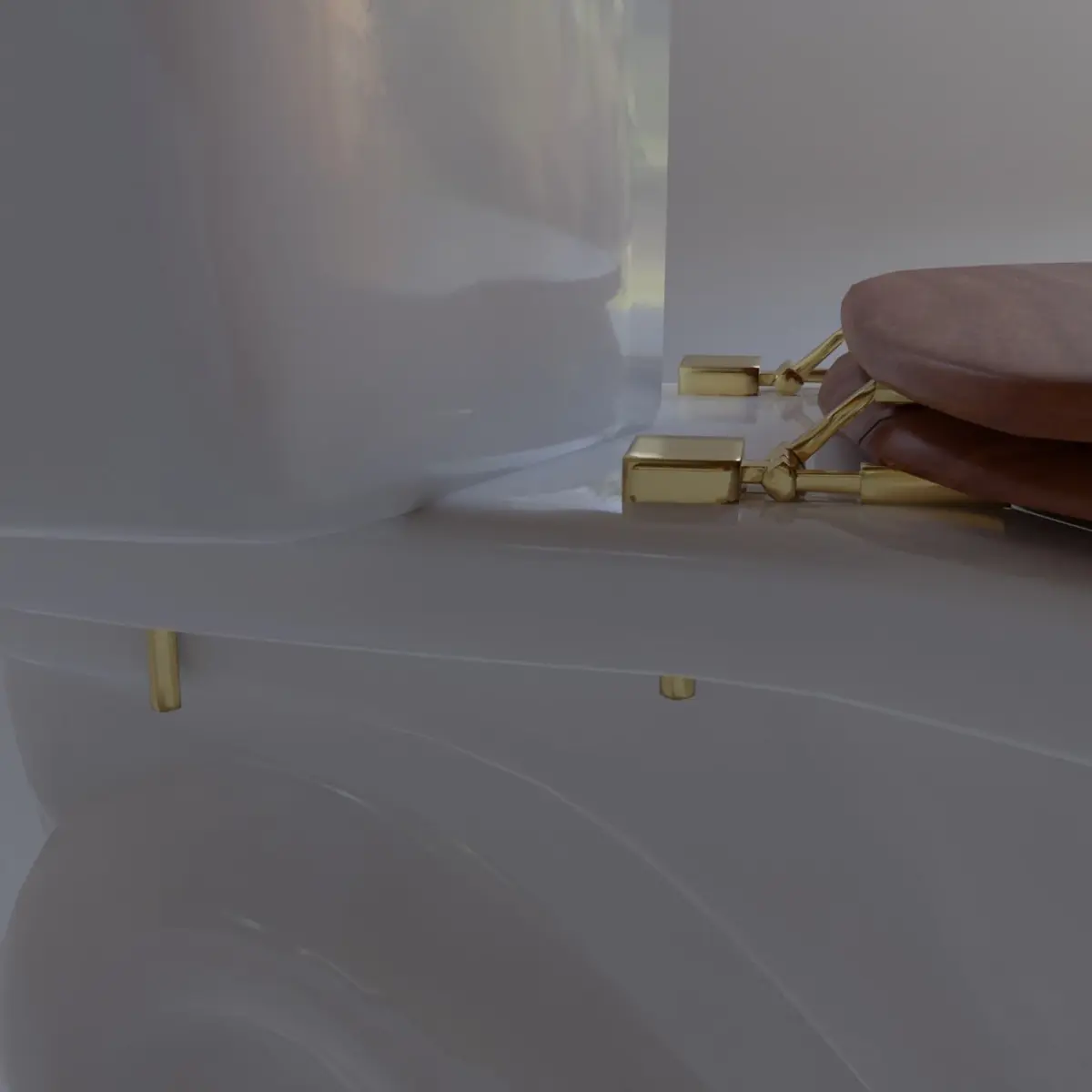 Granite decal on toilet cover and seating with gold attachment