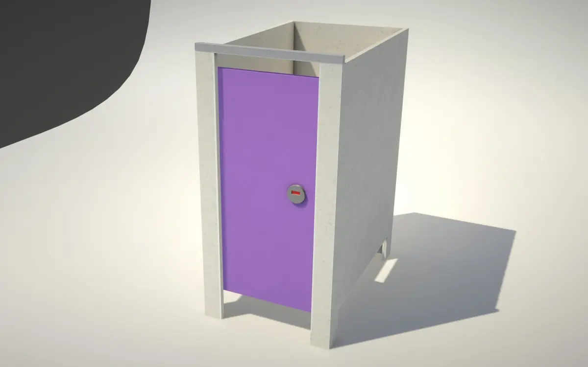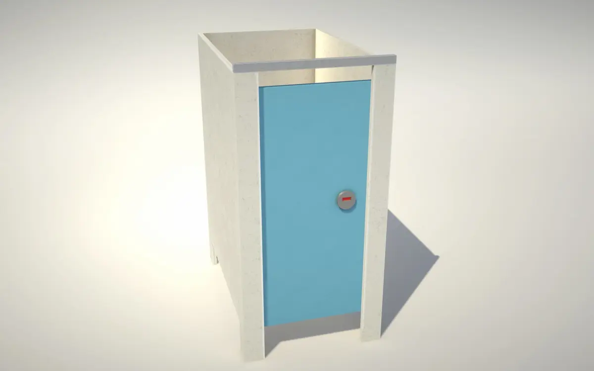 Toilet cubicle found in offices, schools, entertainment venues etc. This asset is game ready, uses as few polygons and vertices where possible, omitting polygons when not seen e.g back of cubicle and toilet