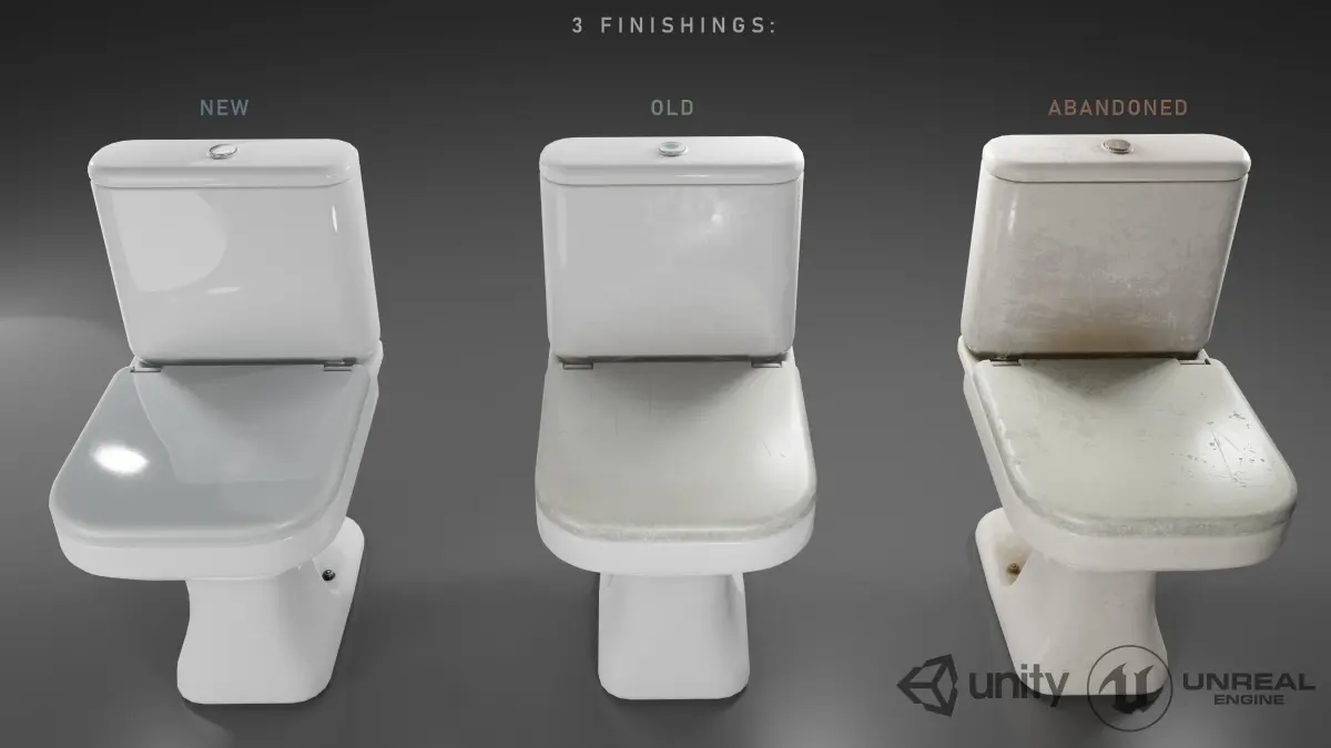 - Abandoned (super dirty porcelain, dirty/aged/scratched plastic and rusty metal).