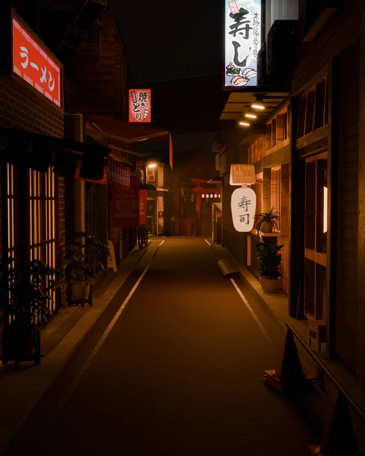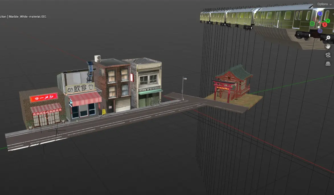 Immerse yourself in the heart of Tokyo with this 3D scene of a Tokyo alleyway. This Blender project boasts 2,164,878 vertices, bringing to life a bustling metropolis teeming with atmosphere. It also has an animation shot of a fully rigged and animated Japanese man going out on the streets with the towering metro train, gliding overhead. The animation video provided with the file consists of 520 frames. It also includes a .blend (recommended) and .gltf file of the scene.