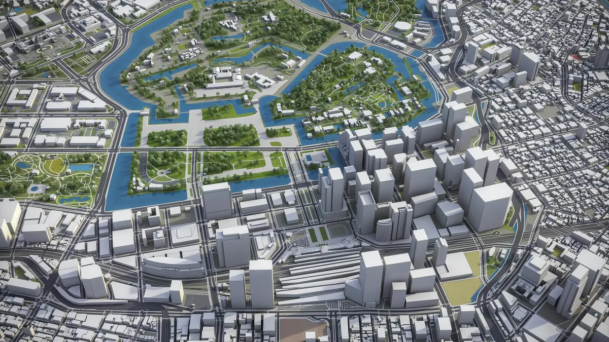 - Full city extents up to 100 x 100 km — or crop to an area of interest for better format compability and scene performance