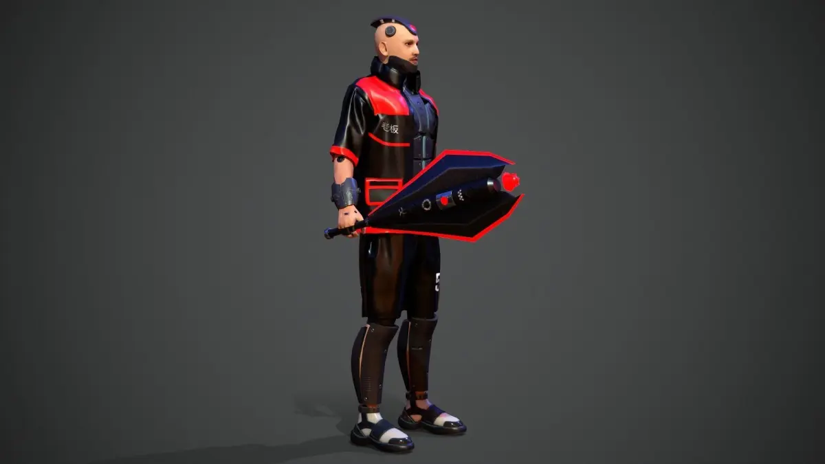 Continuation of the Tokyo Machine series, Low-poly 3D model: Tokyo Machine Boss. The project includes a Character and his weapons, made in a unique cyberpunk style. The project is provided in five different colors, red, purple, blue, green and yellow. Polycount: 43 451 Faces, PBR texture from 512x512 to 4096x4096 png formats, Unreal and Unity packages, rigging Apose for UE4(humanoid skeleton) and Tpose for Unity. Settings in game engines are standard. Render main photos in Marmoset.Unreal retarget ready!