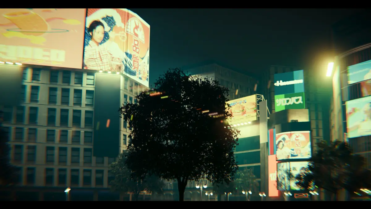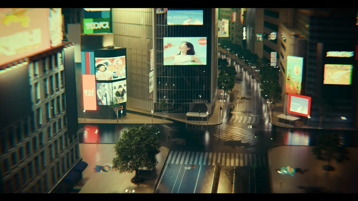 - Buildings: Detailed facade modeling with recognizable storefronts like Tsutaya, Zara, and 100MENS