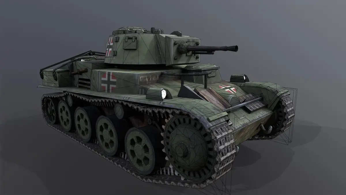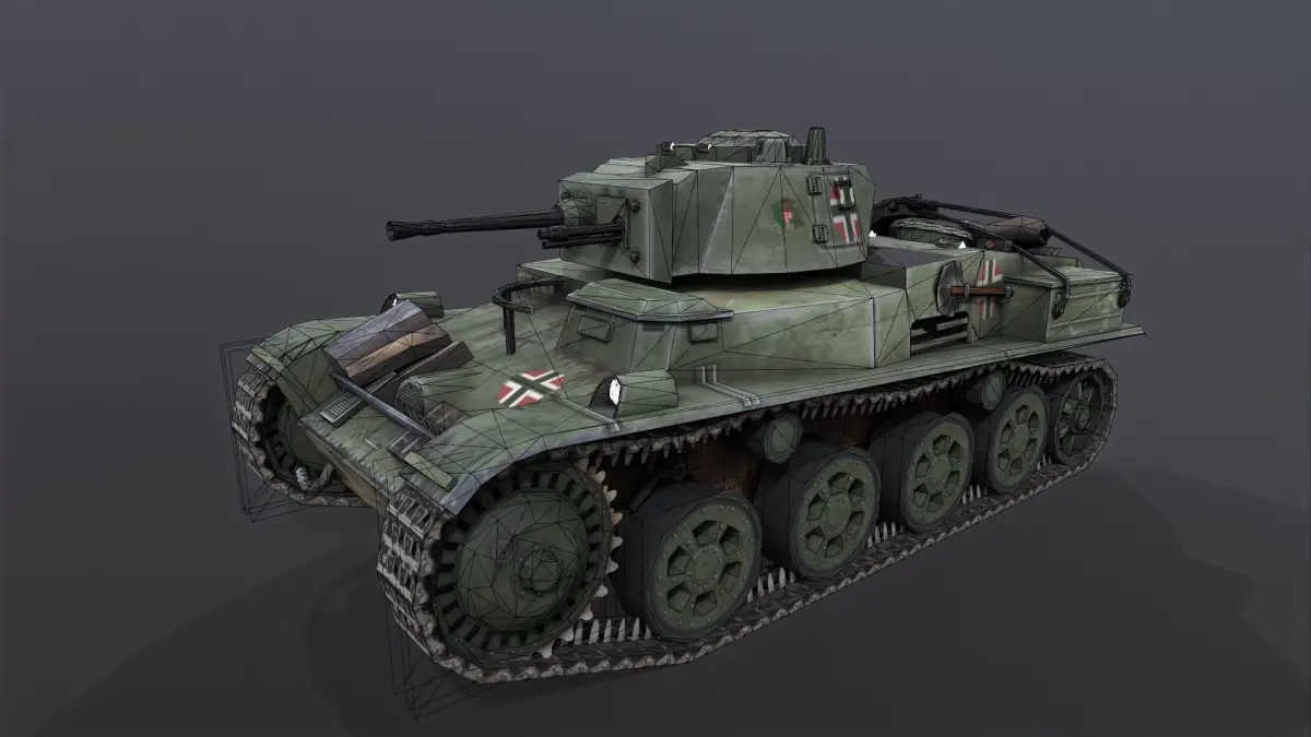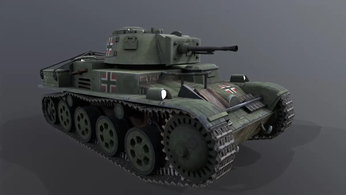 Toldi 1 Spring Edition tank.Low poly for games.Used seperated parts:Body 1024*1024 colorTower 512*512 colorWheels and track 256*256 color