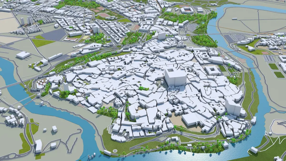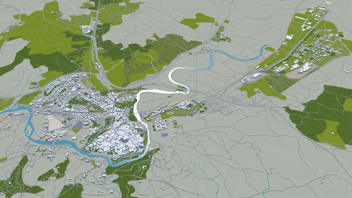 Accurate 3D city model and its surrounding area based on GIS data Year 2021