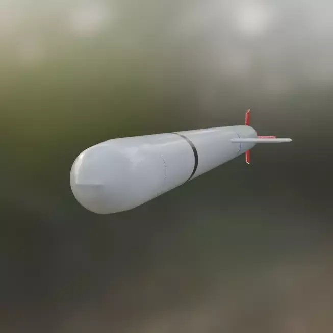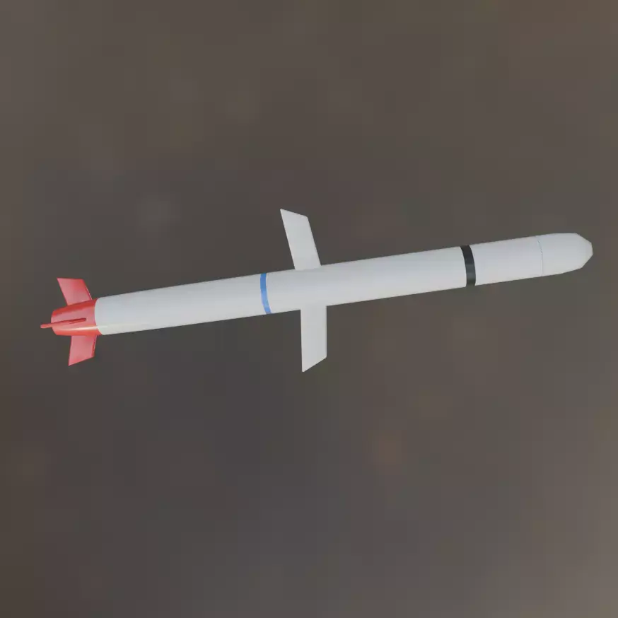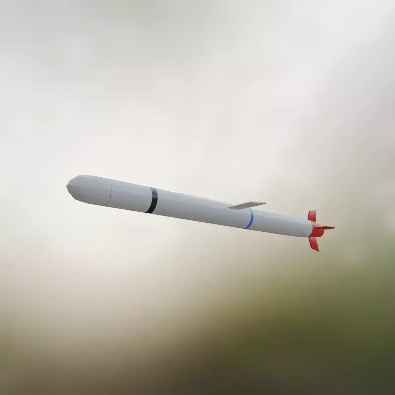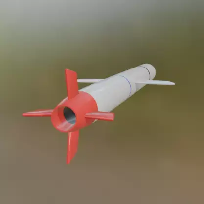 Model of a Tomahawk Rocket, suitable for games. Made using real images of weapon, without any descriptive labels, neutral oriented. The Tomahawk cruise missile is a long-range, all-weather, subsonic cruise missile. It is a highly versatile and accurate weapon system, capable of being launched from a variety of platforms, including surface ships, submarines, and land-based launchers. The Tomahawk is designed to fly at low altitudes, using terrain-following radar to avoid detection, and can strike targets with pinpoint accuracy. It is equipped with a sophisticated guidance system, including GPS and an inertial navigation system, and can be armed with a conventional warhead. The Tomahawk has a range of over 1,000 nautical miles and can loiter over a target area for extended periods, providing flexibility in mission planning. It is a crucial component of modern military arsenals, providing a powerful and effective long-range strike capability.
