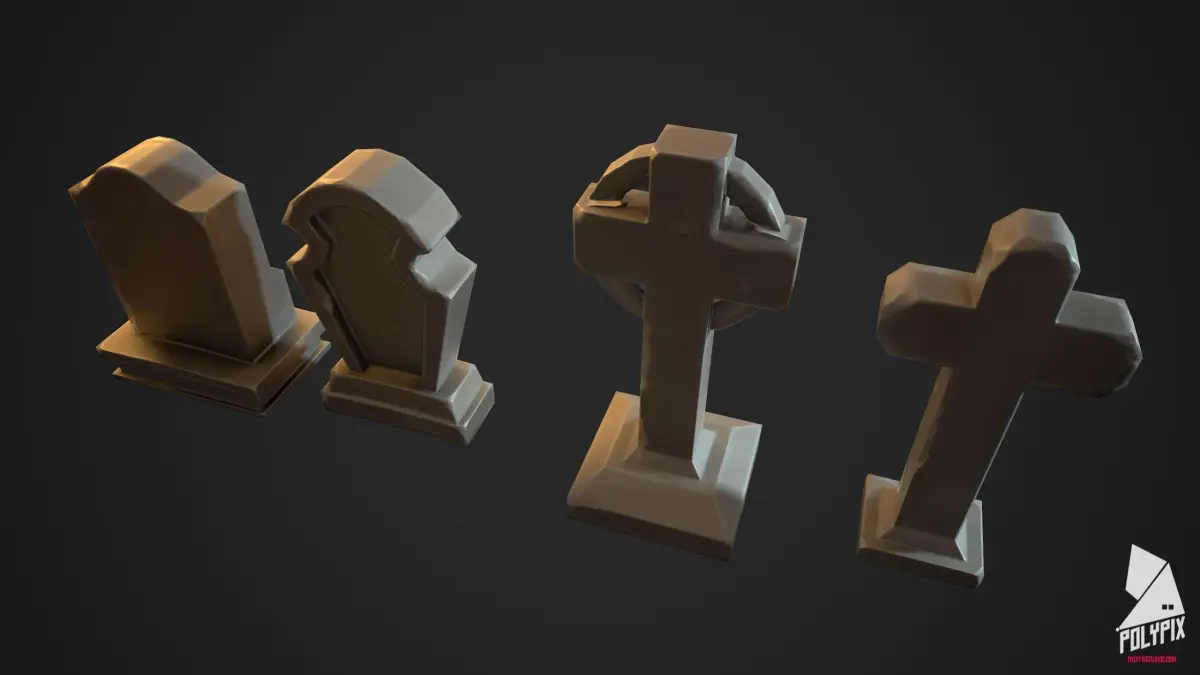 Tombstone four gravestones Low-poly 3D model