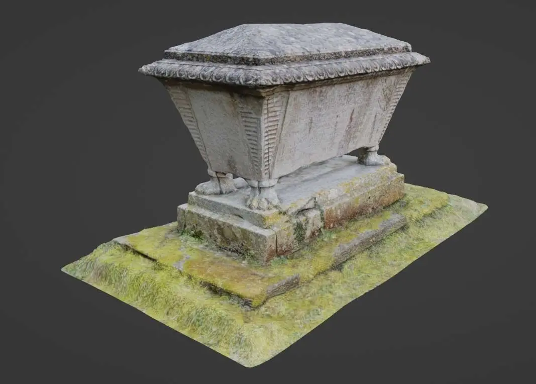 Downloadable Tombstone Photo-Scanned Cemetery Graveyard Asset Low-Poly 3D model is now available. Any 3D artist or game developer wishing to produce a great visual experience should use this realistic and extremely detailed model of a stone tomb.