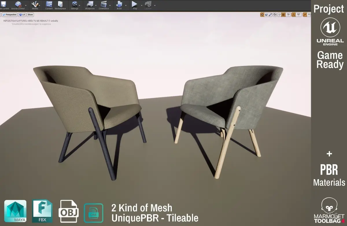 - Unreal Engine 4 -- Project file with unique and tileable mesh + 2K PBR textures + UE4 tileable materials
