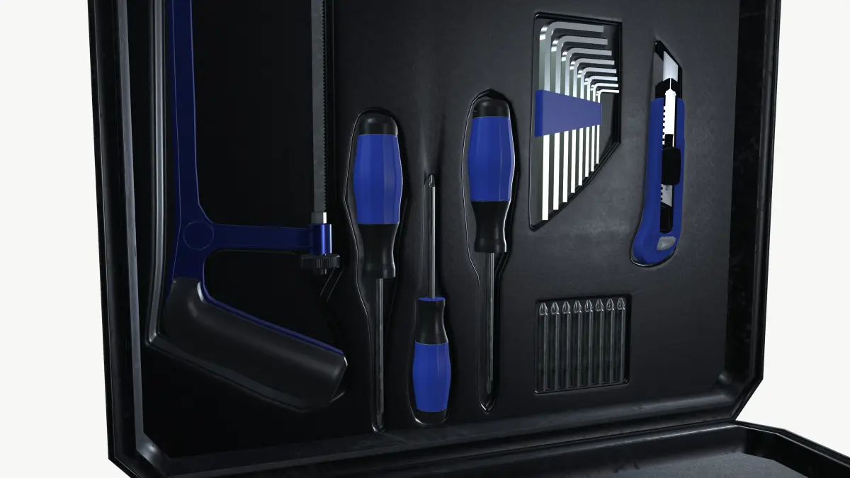 - The interior is thoughtfully arranged to ensure that each tool has its designated space, allowing for quick access and efficient organization.
