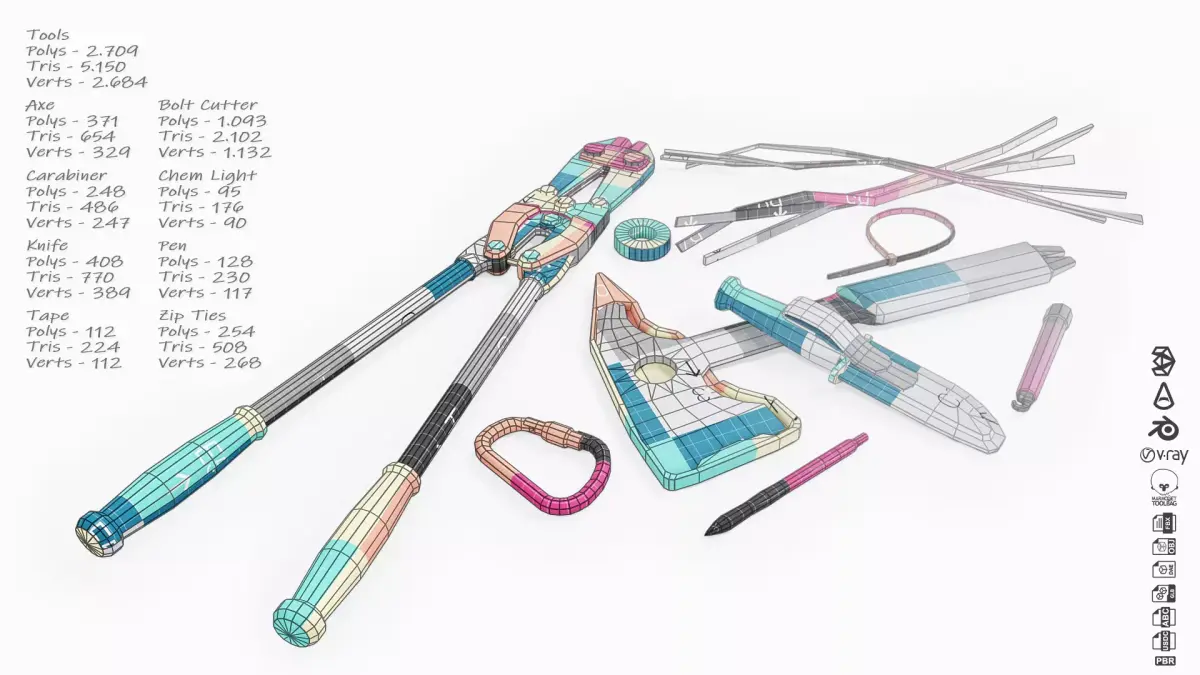 OBJ (OBJ, filesize: 813 KB), MAX (Autodesk 3ds Max, filesize: 11.4 MB), PNG (PNG, filesize: 46.7 MB), BLEND (Blender, filesize: 1.77 MB), FBX (Autodesk FBX, filesize: 407 KB), ABC (Alembic, filesize: 356 KB), USD (USD, filesize: 257 KB), GLTF (glTF, filesize: 441 KB), DAE (Collada, filesize: 1.52 MB), OTHER (Other, filesize: 15.6 MB), TBSCENE (Marmoset Toolbag, filesize: 1020 KB)