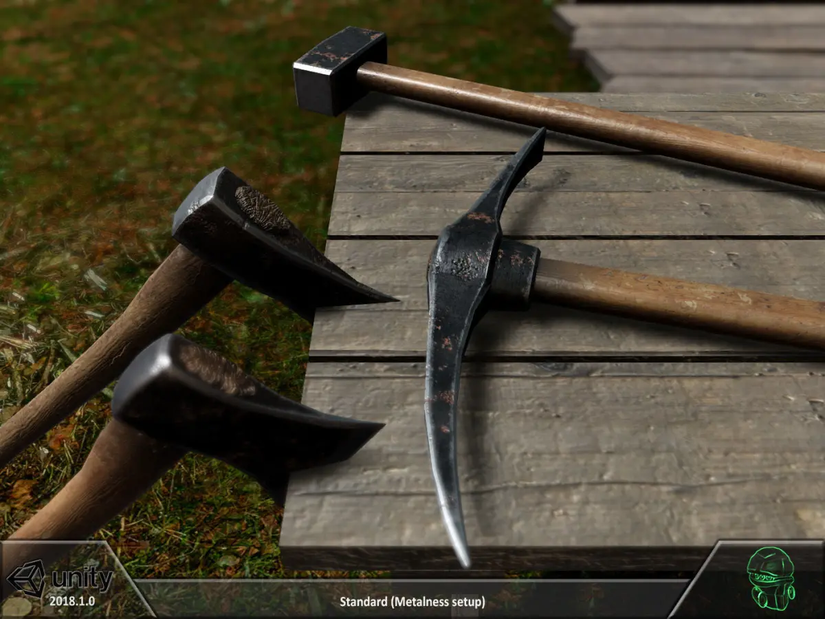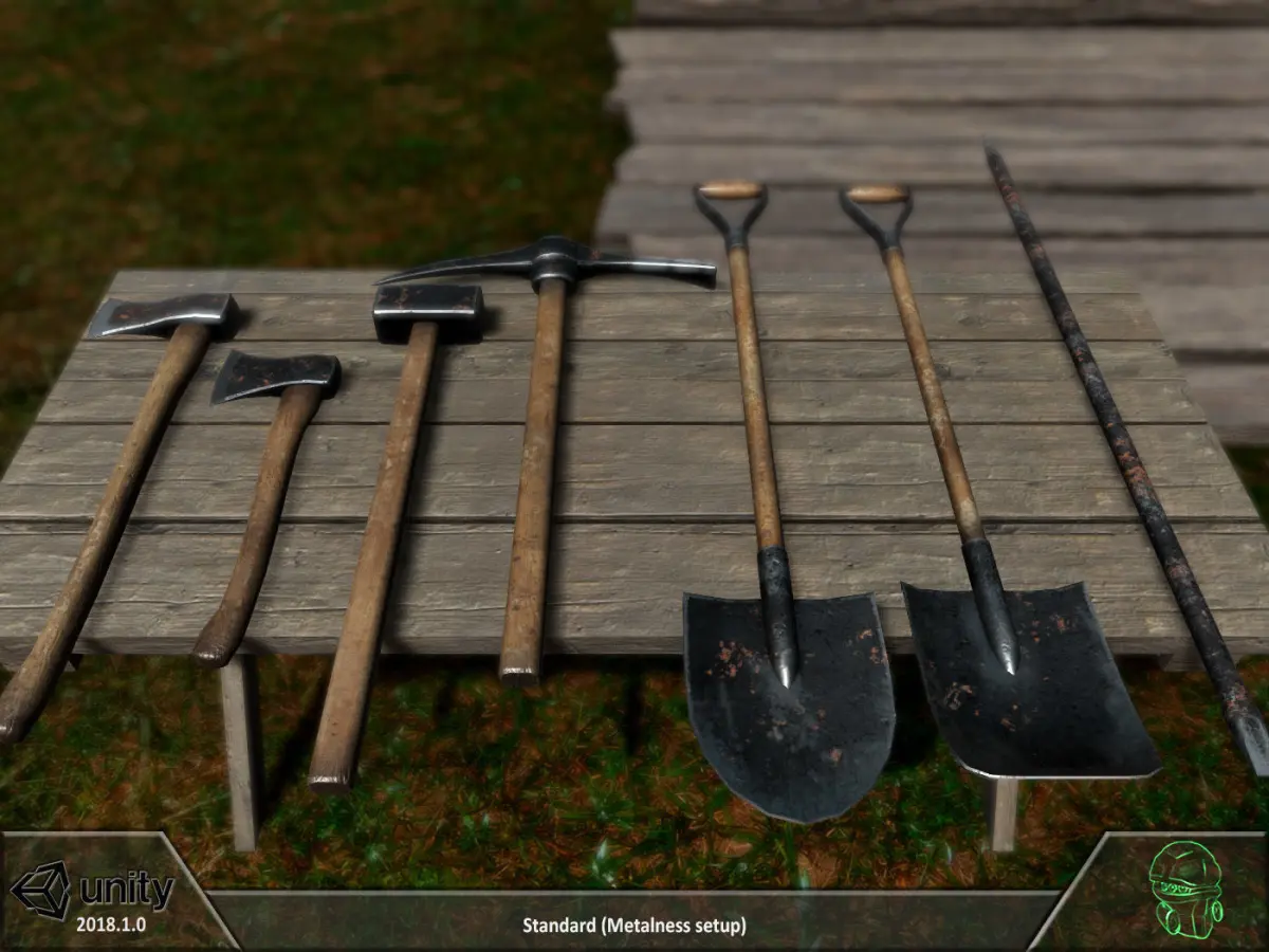 Big axe --576 trisAxe --578 trisPick mattock--544 trisHammer --176 trisChisel --158 trisShovel 1 --792 trisShovel 2 --908 tris