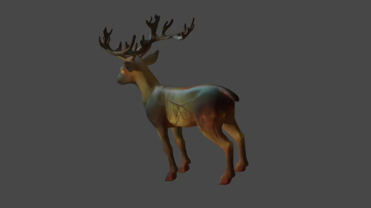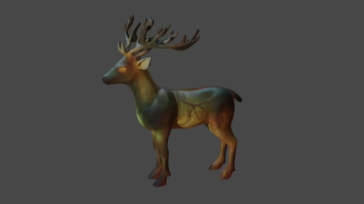 A fantastic creature, a forest spirit in the form of a deer with large antlers and transparent insides.This stylized model with a beautiful material will look perfect in your game about magical creatures.