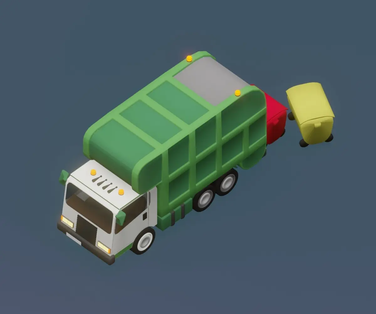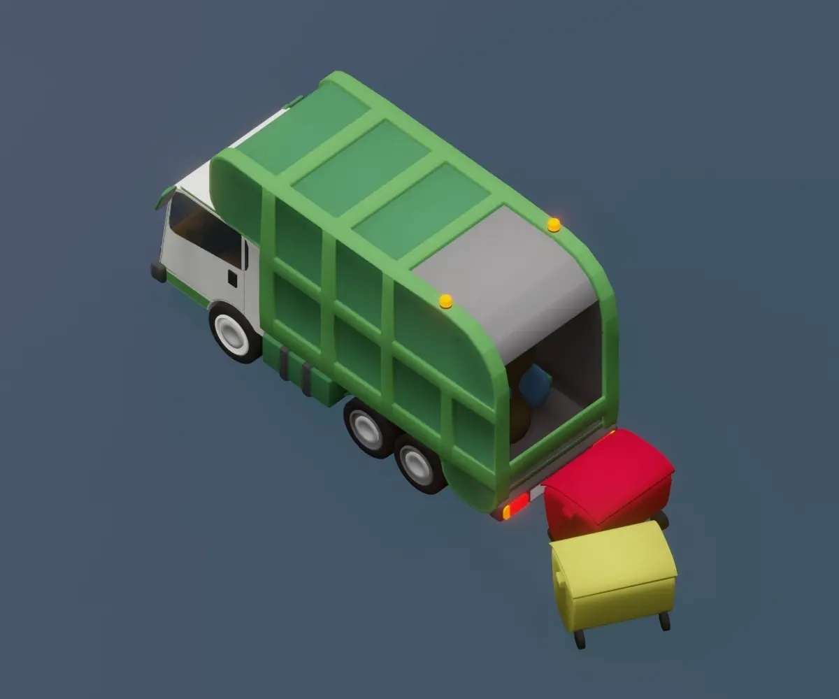 Simple garbage truck for toon style scenes. Ready for your movies, TV, advertising, ilustrations, or game, etc.The perfect model for isometric illustration and for illustrating materials for the youngest.