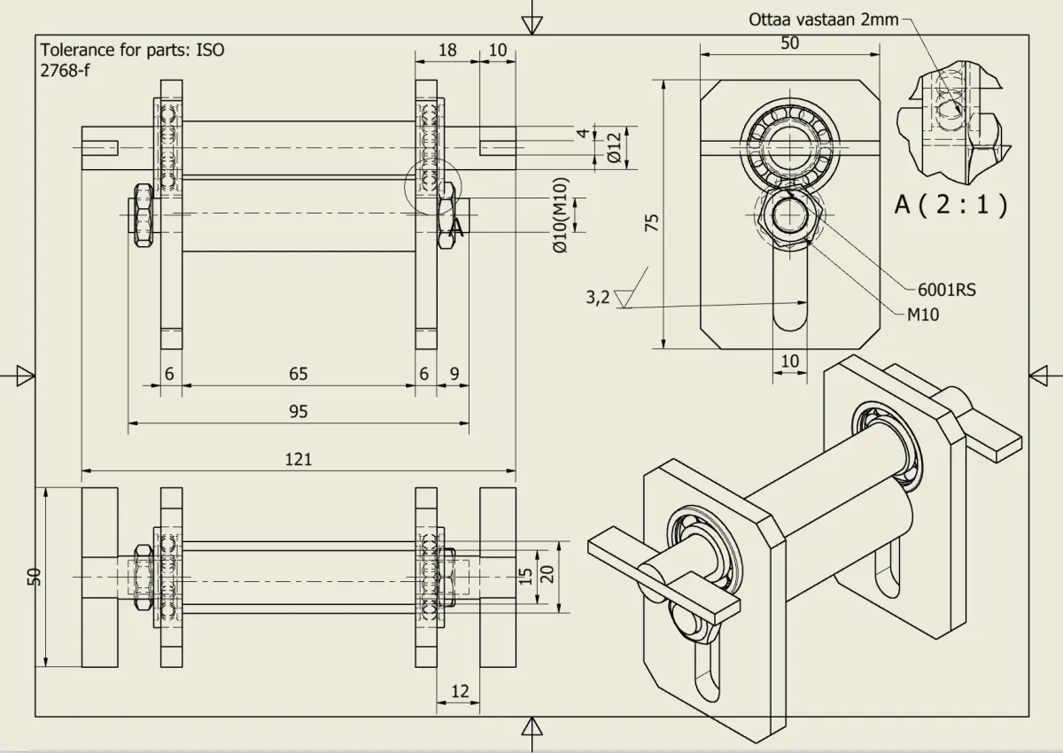 I had a problem where i couldn't get 100% of the toothpaste from the tube so i designed and made a toothpaste roller.The top axcel is still but can turn, so that it doesn't tear the tube. The axcel under that is not turnable and position is fixed by 2 M10 thread nuts.