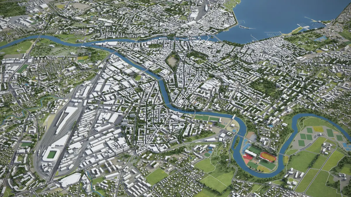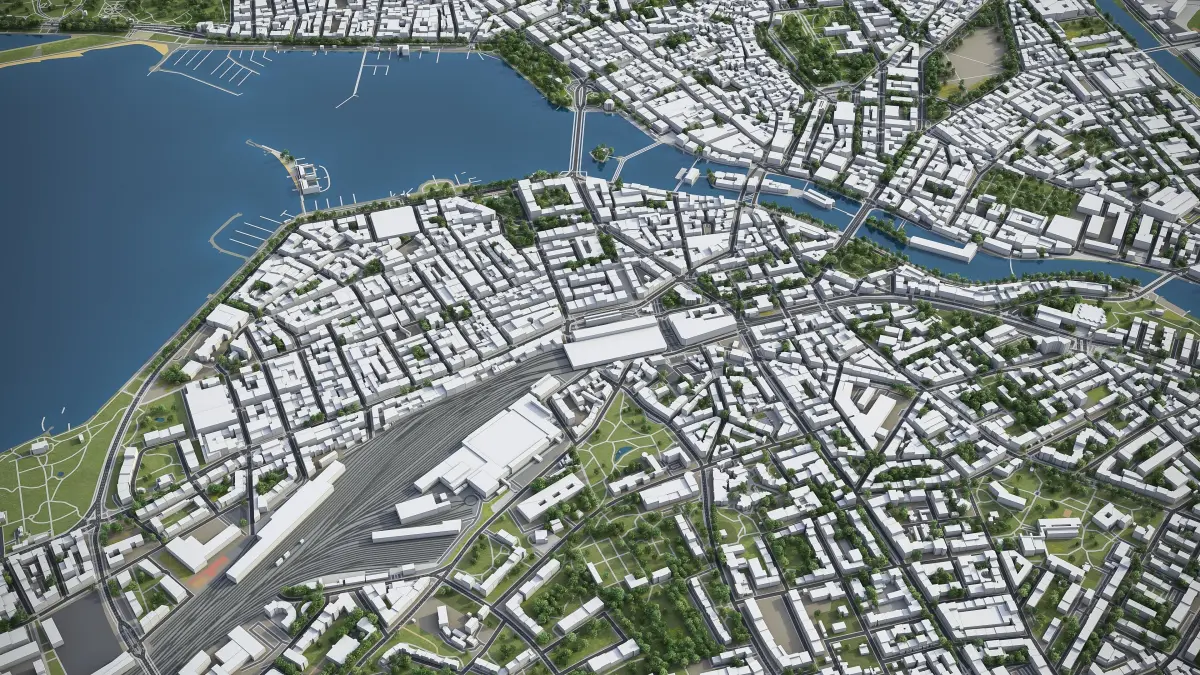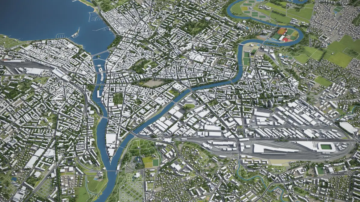 - Buildings, landuse areas, roads and railways split by type (see scene stucture)