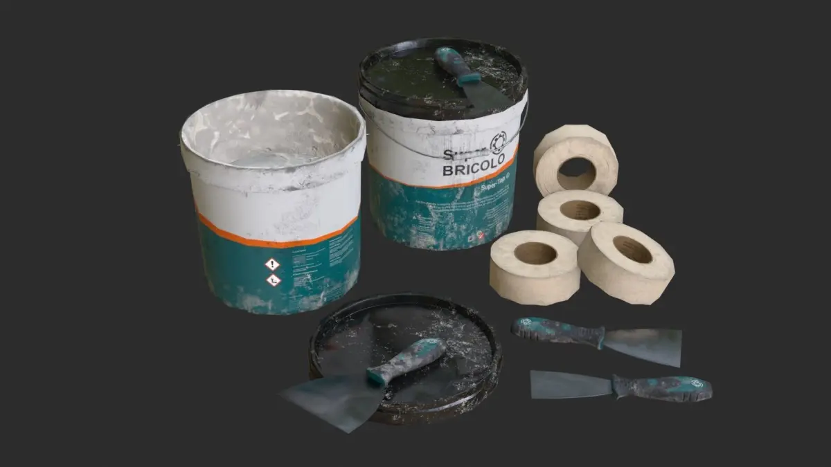 This Plaster tools and bucket set includes 4 LODs and colliders. This set includes 6 individual objects (bucket & lib, joint roller & knifes), the set also includes 4 prefab assets. Those tools elements are ready for game and available in lowpoly and PBR ready.