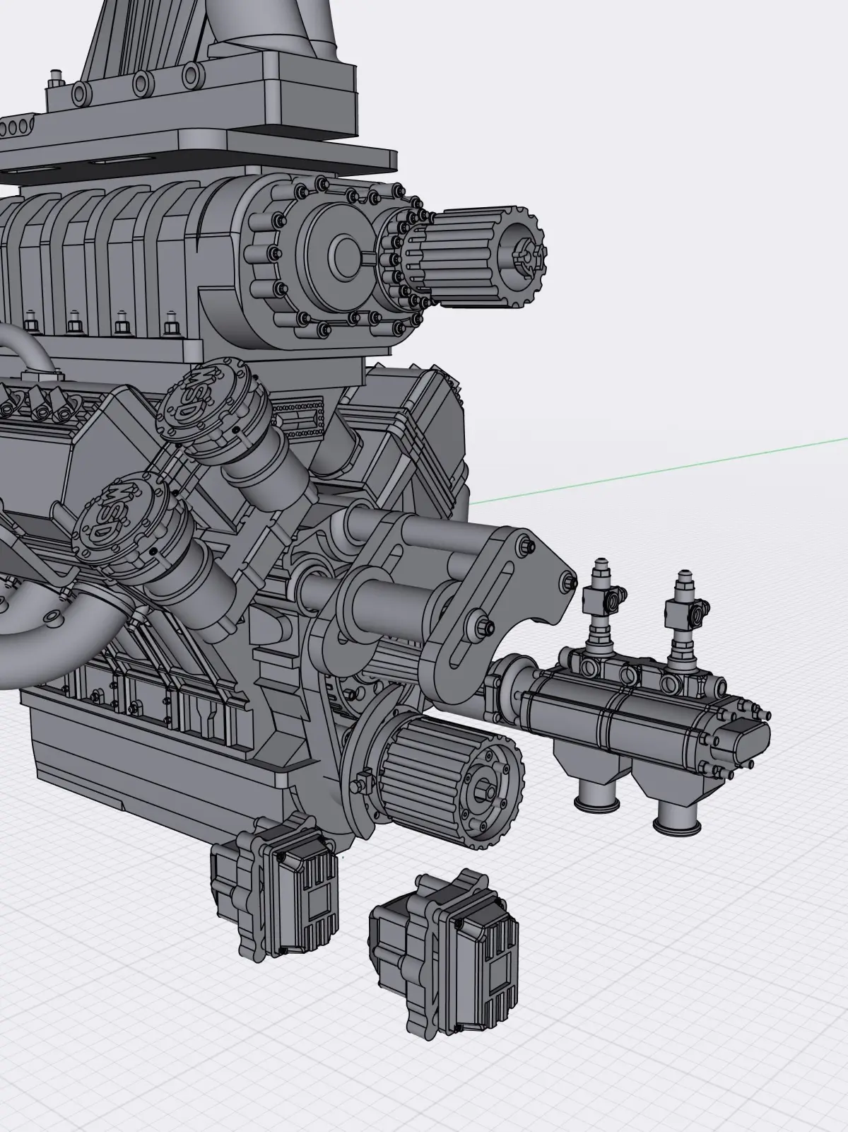 Details include AN fittings to attach hoses to, nuts and bolts. Design can be seperated into individual parts if requested