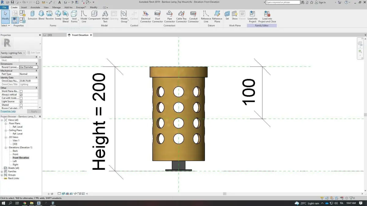 Parameters:Diameter: 110mm (Fixed)Height: 250mm (Adjustable Parameter)Material Texture and Finishes: Bamboo Shell, Acrylic Light Cover, Fixture Frame. (All adjustable when loaded to project)Luminance: Recommended is 60lumens/ Watt