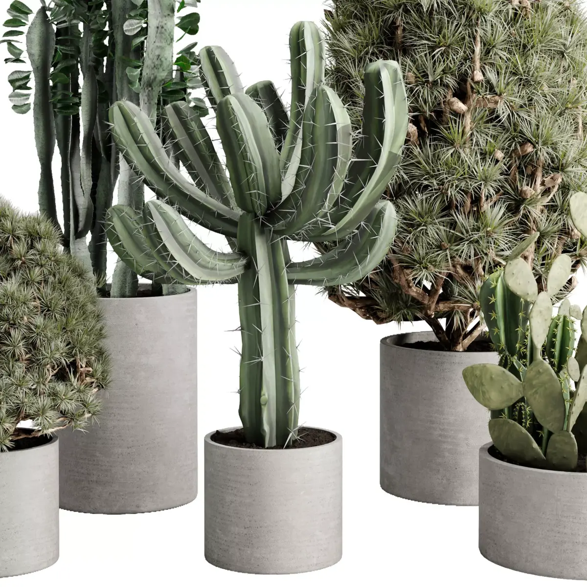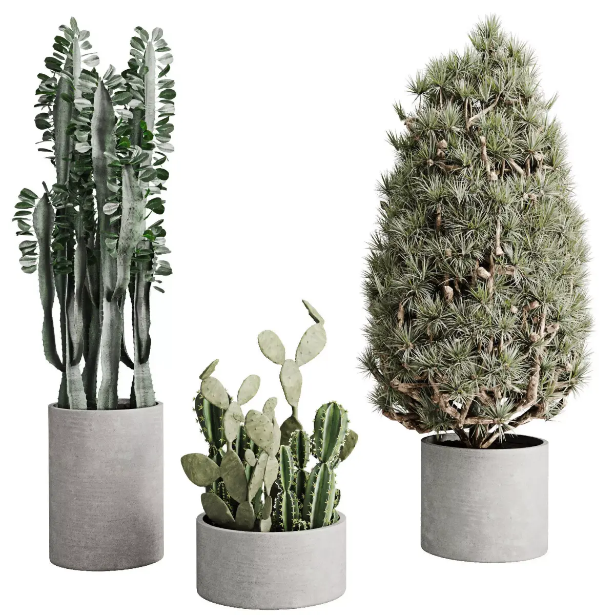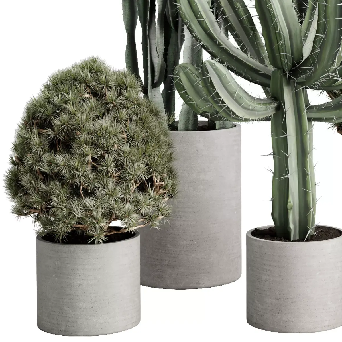 Topiary Ball Bush and cuctus in a concrete Outdoor Plants 245 3D model